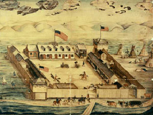 Pierre Chouteau (1789–1865) was a fur trader (beaver, deer, buffalo) and son of one of the founders of St. Louis, some 800+ miles down the Missouri from Pierre. The fort named after him was built in 1832, a strategic spot for John Jacob Astor's American Fur Company, located as it was halfway between the company's headquarters in St. Louis and its northernmost posts in North Dakota and Montana. The fort was in use for a quarter century and was visited by George Catlin and Audubon.