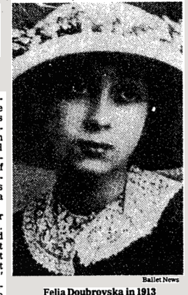 I cut this picture out of the Times way back when because she looked so much like me (to me). I long since lost the photo but I just found the rest of the obituary as I was going through files (my continuing & permanent project!). I had remembered only that she was a Russian ballerina, & now I know she was Felia Doubrovska, who died in 1981 at age 85. At first I couldn't find this photo online, & wondered why I ever saw a resemblance in other pictures of her. But the TimesMachine took me to the exact page, and there she (I) was.