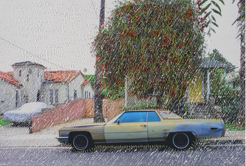 I love seeing how this has developed into embroidery and scratching on photographs—adding, removing till she's created something new & beautiful. OK, I'm partial to cars & baseball (as is Dot) but this picture is something I could look at for a long long time, drift into its story & landscape. I love how the car is outlined in a simple stitch, a reminder that we had to keep our old cars running with crackerjack toys & ingenuity, & that even a beater can be loved. Read More